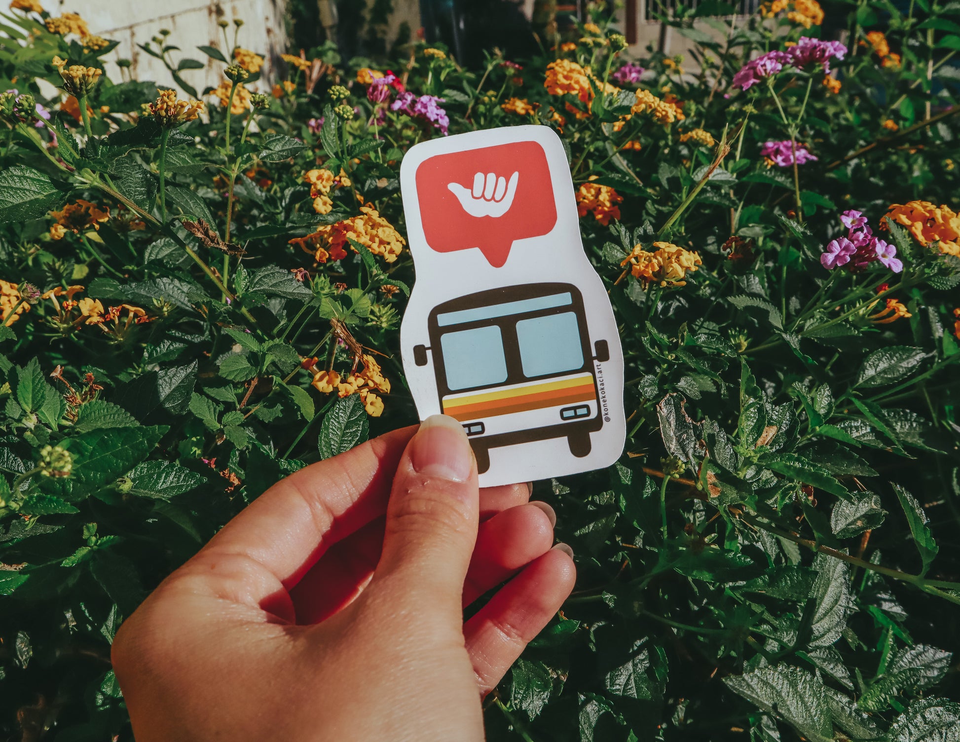 Back home in Hawaii, I noticed when you let The Bus merge into your lane, sometimes the driver lights up a “shaka” sign on the back of the vehicle. In this piece, I created a trendy redesign of a local custom.