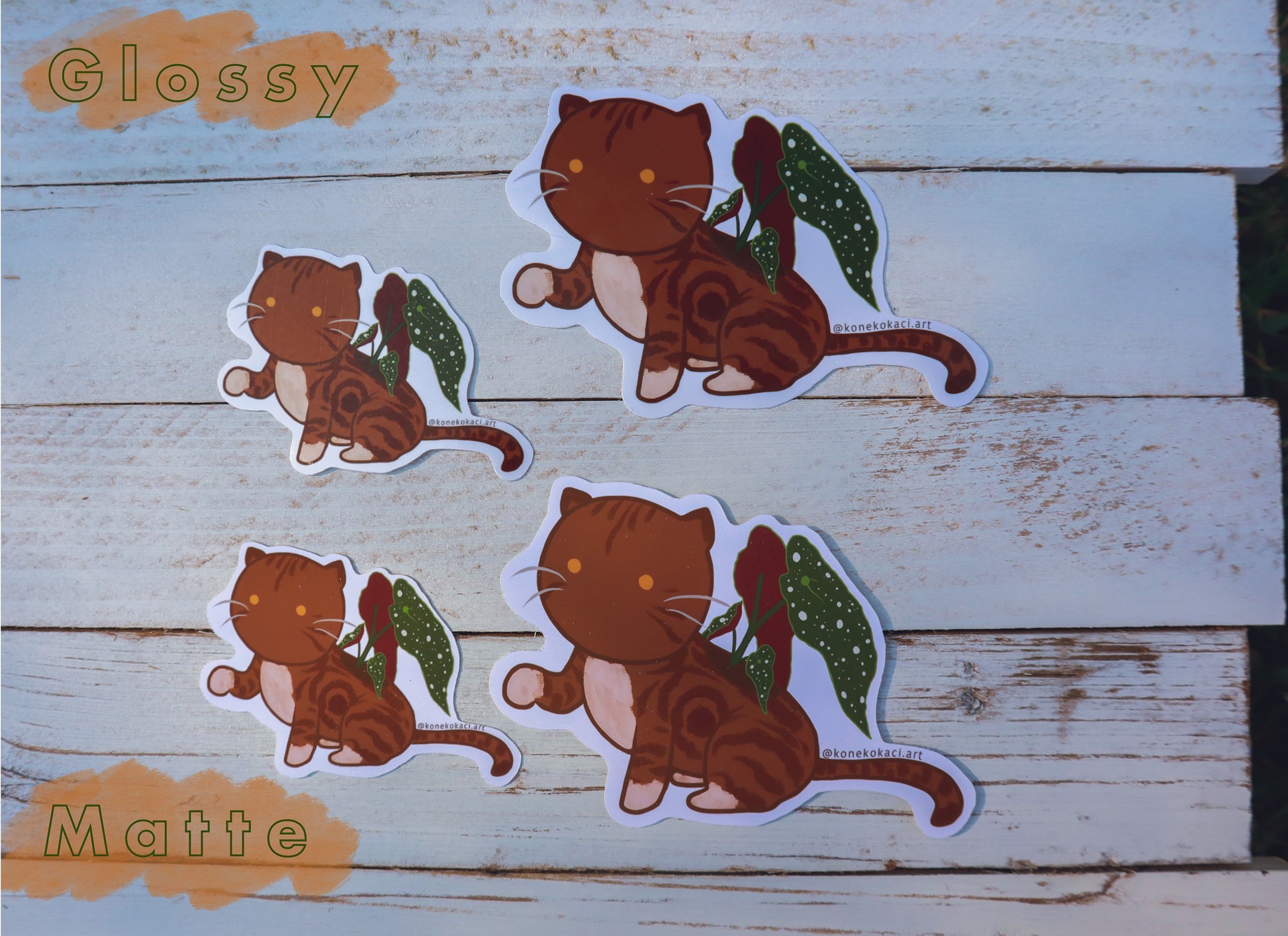 I illustrated these in Procreate. For stickers, I transfer the PNGs to Photoshop and create an entire sheet that I can print/cut with my Cricut. This will be printed and packaged personally from konekokaci’s apartment. Stickers are covered with recycled paper for protection and shipped in an envelope with board backings. I may need a few days to let the ink set + get to the local post office. :)