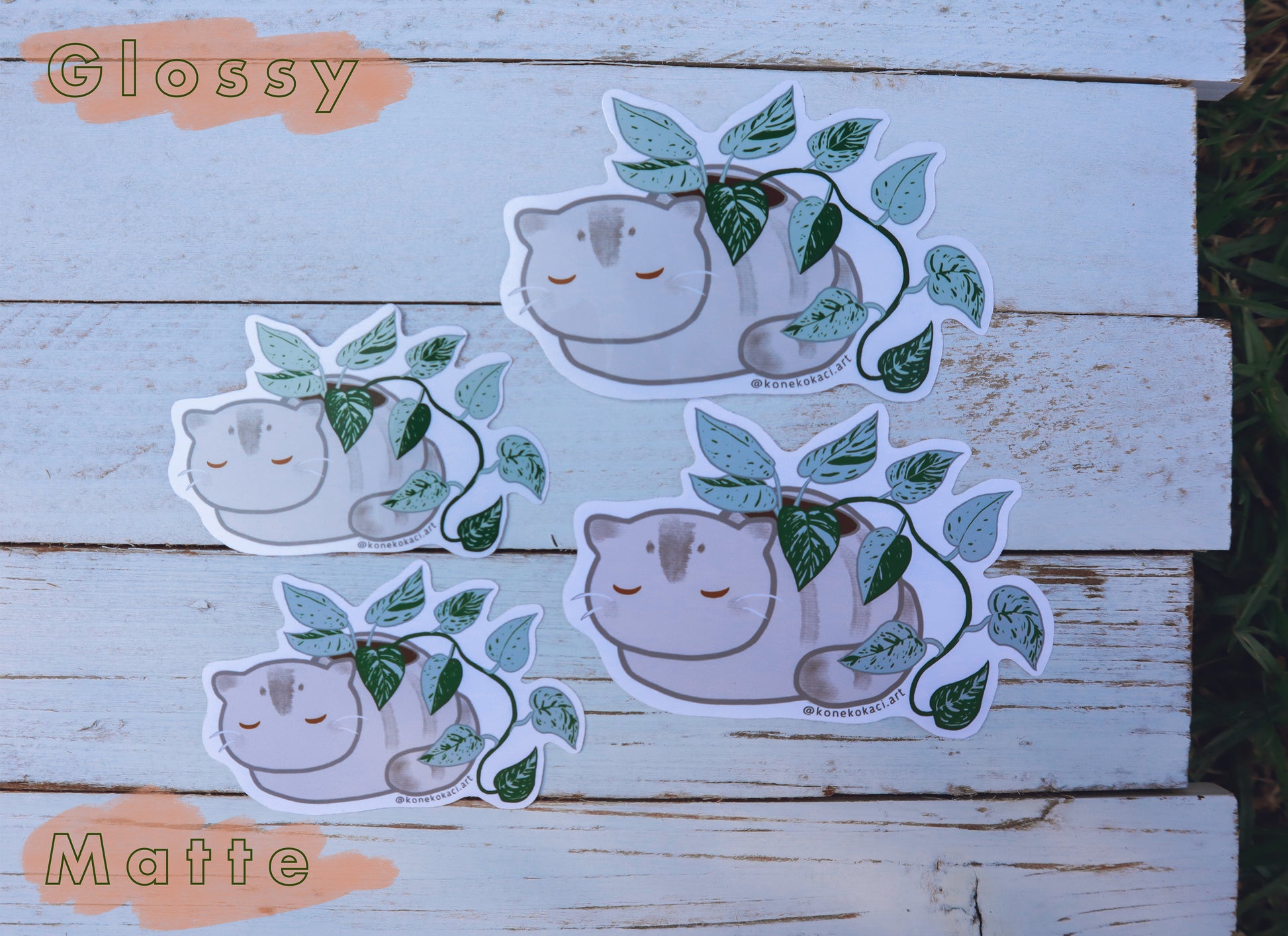 I illustrated these in Procreate. For stickers, I transfer the PNGs to Photoshop and create an entire sheet that I can print/cut with my Cricut. This will be printed and packaged personally from konekokaci’s apartment. Stickers are covered with recycled paper for protection and shipped in an envelope with board backings. I may need a few days to let the ink set + get to the local post office. :)
