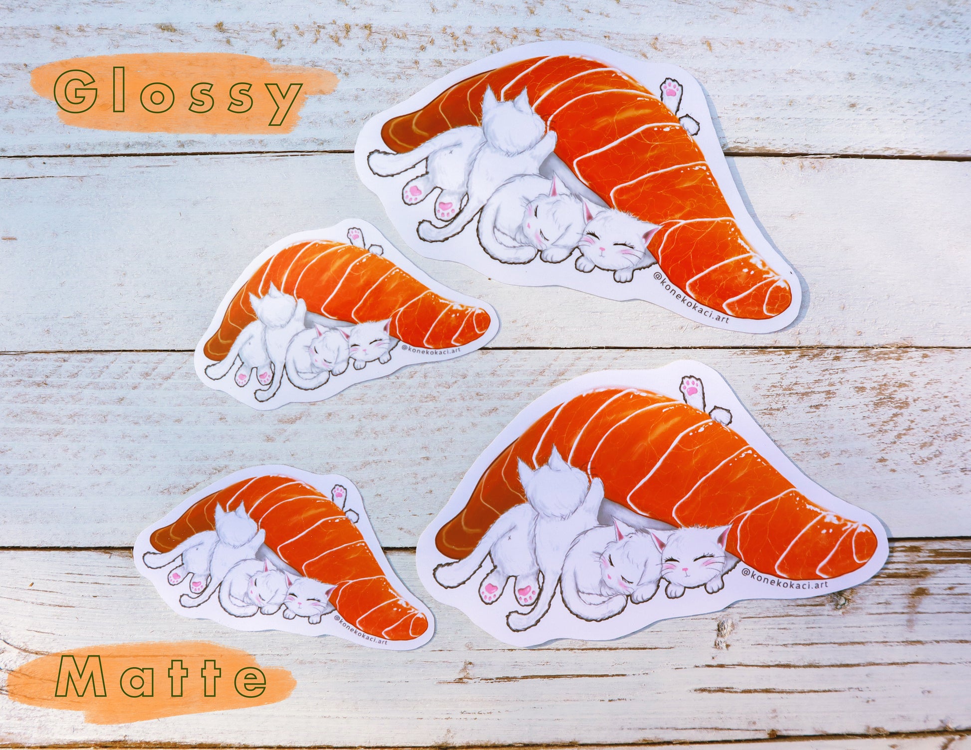 Cats have got to be my favorite animal. (hence my name koneko which means “kitten” in Japanese) I have this weird obsession of animals combined with food; to me, it instantly becomes Kawaii AFFFFFF. This piece combines my favorite food, sushi, along with kittens.