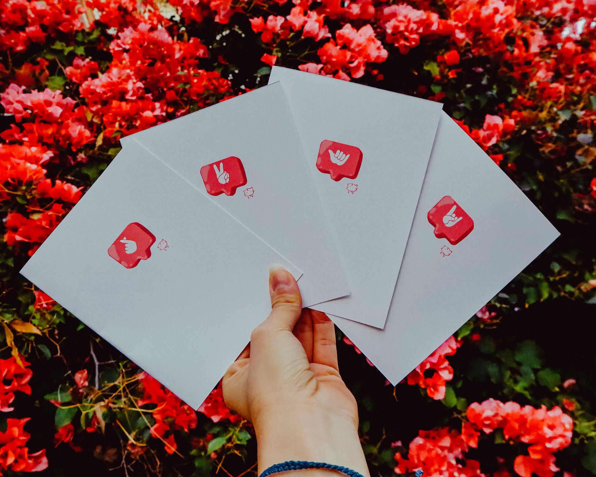 These are inspired by my "Da Bus" art print. I loved the little shaka reaction bubble and wanted to create other hand signs with that concept.